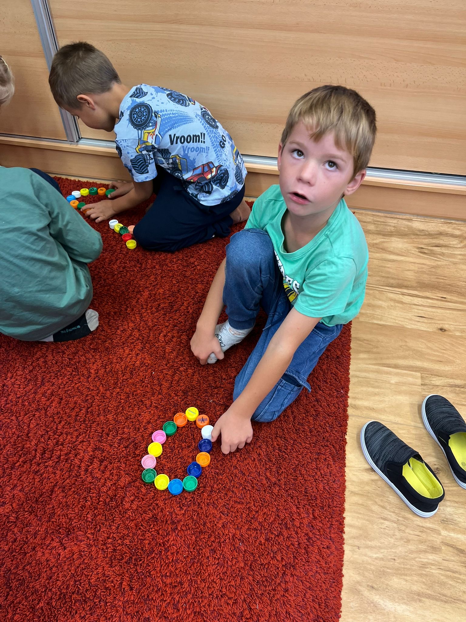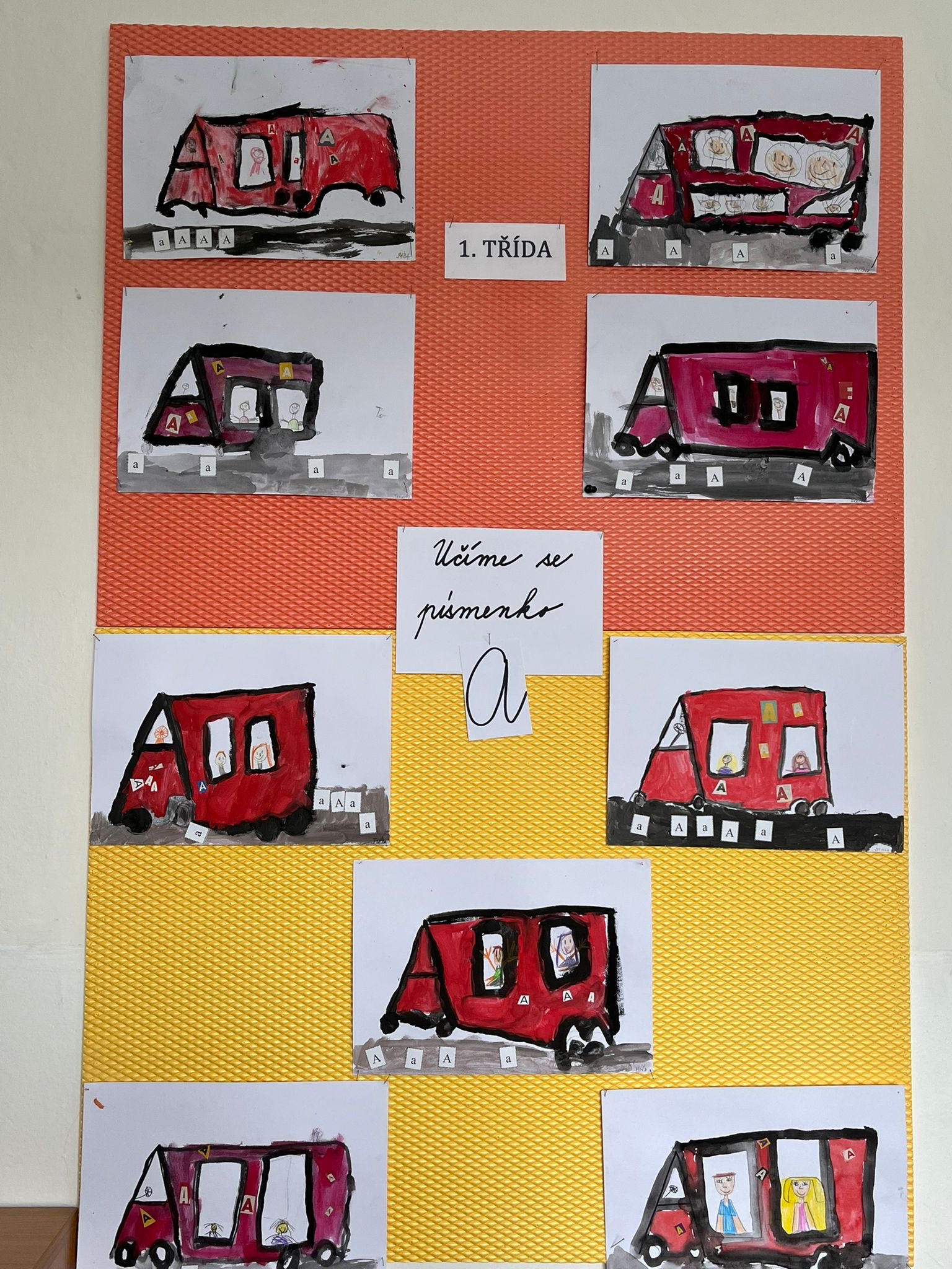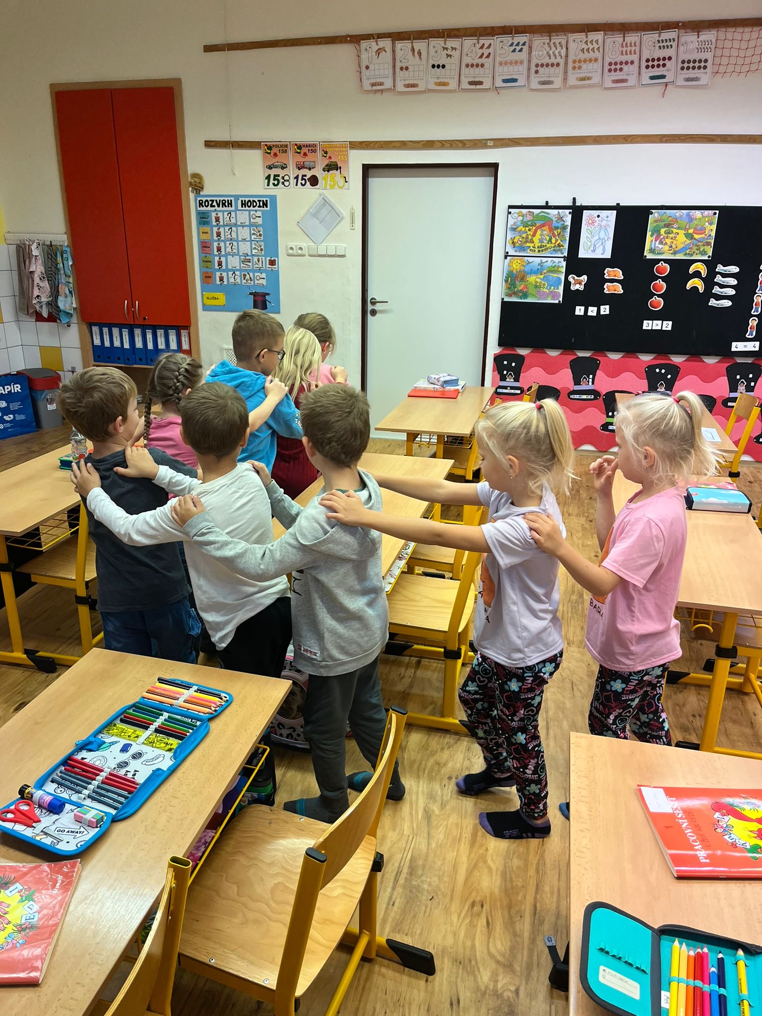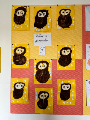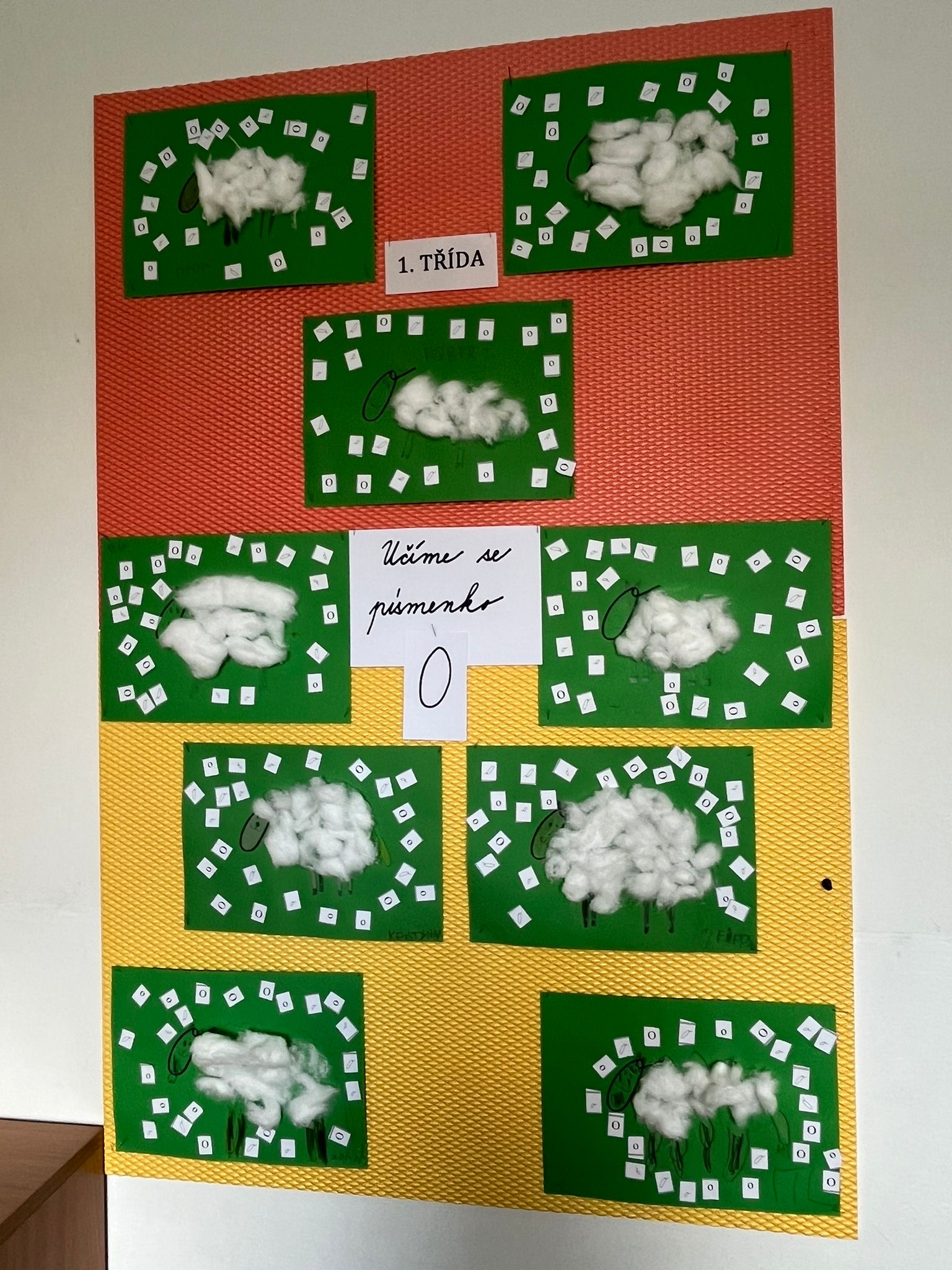 Naši prvňáčci jsou už měsíc velkými školáky. Zvykají si na nové povinnosti, pilně pracuji, počítají, učí se písmenka. A že jim to jde! Už umí O,S,B,U a A :).