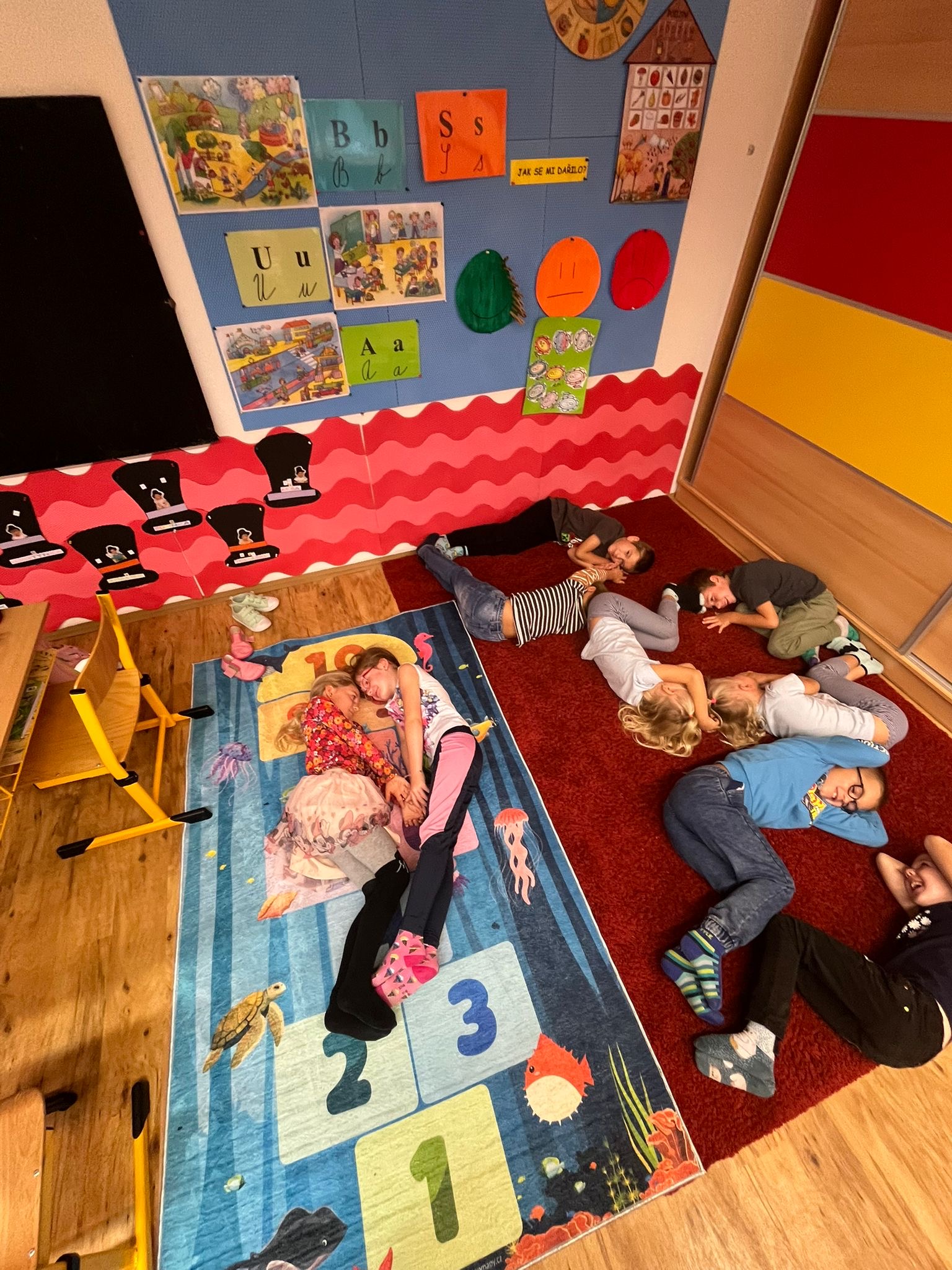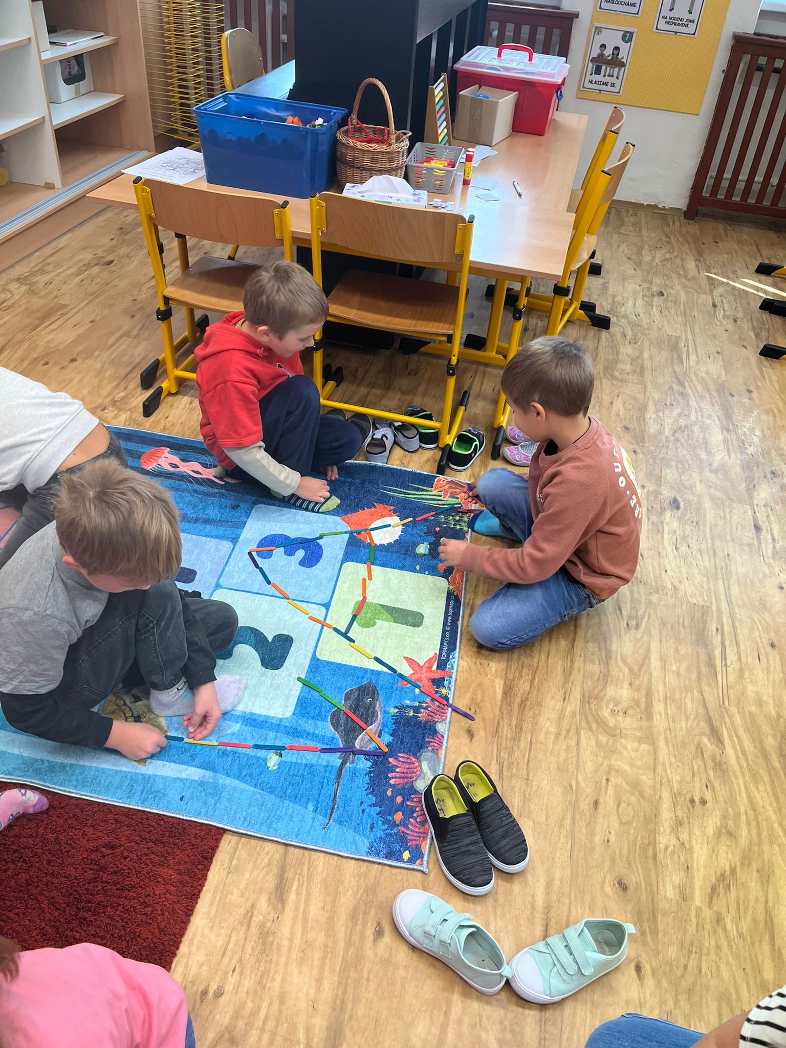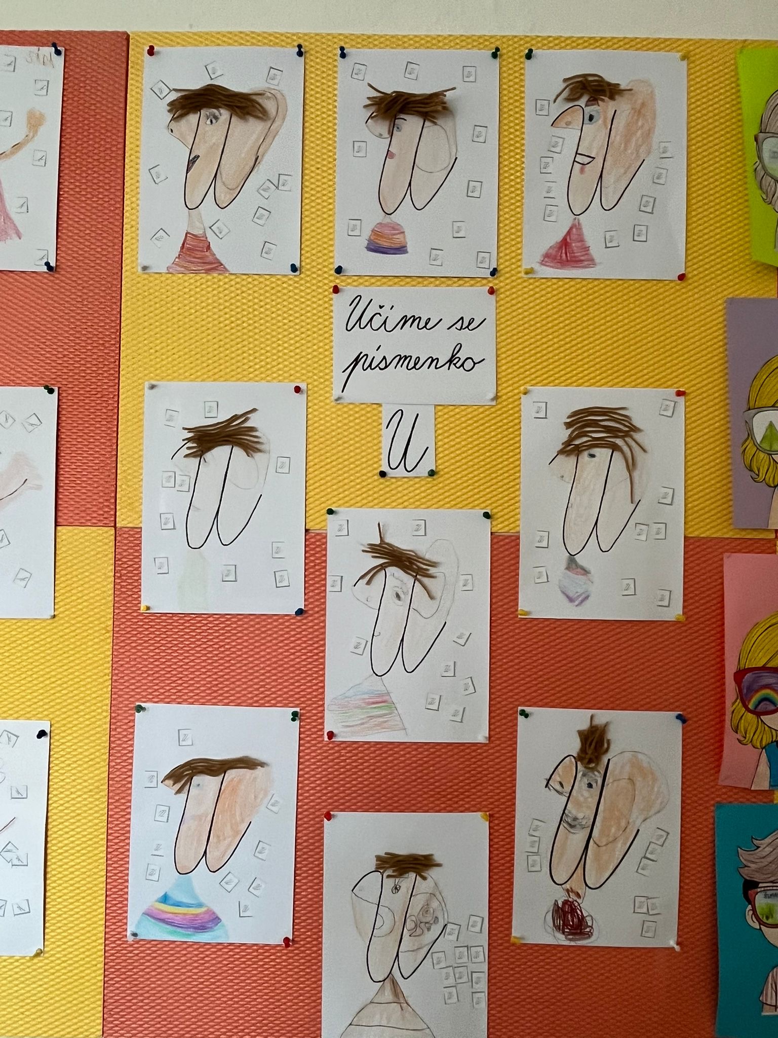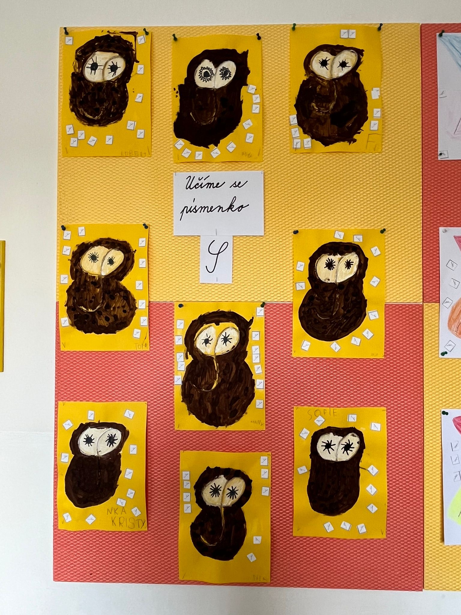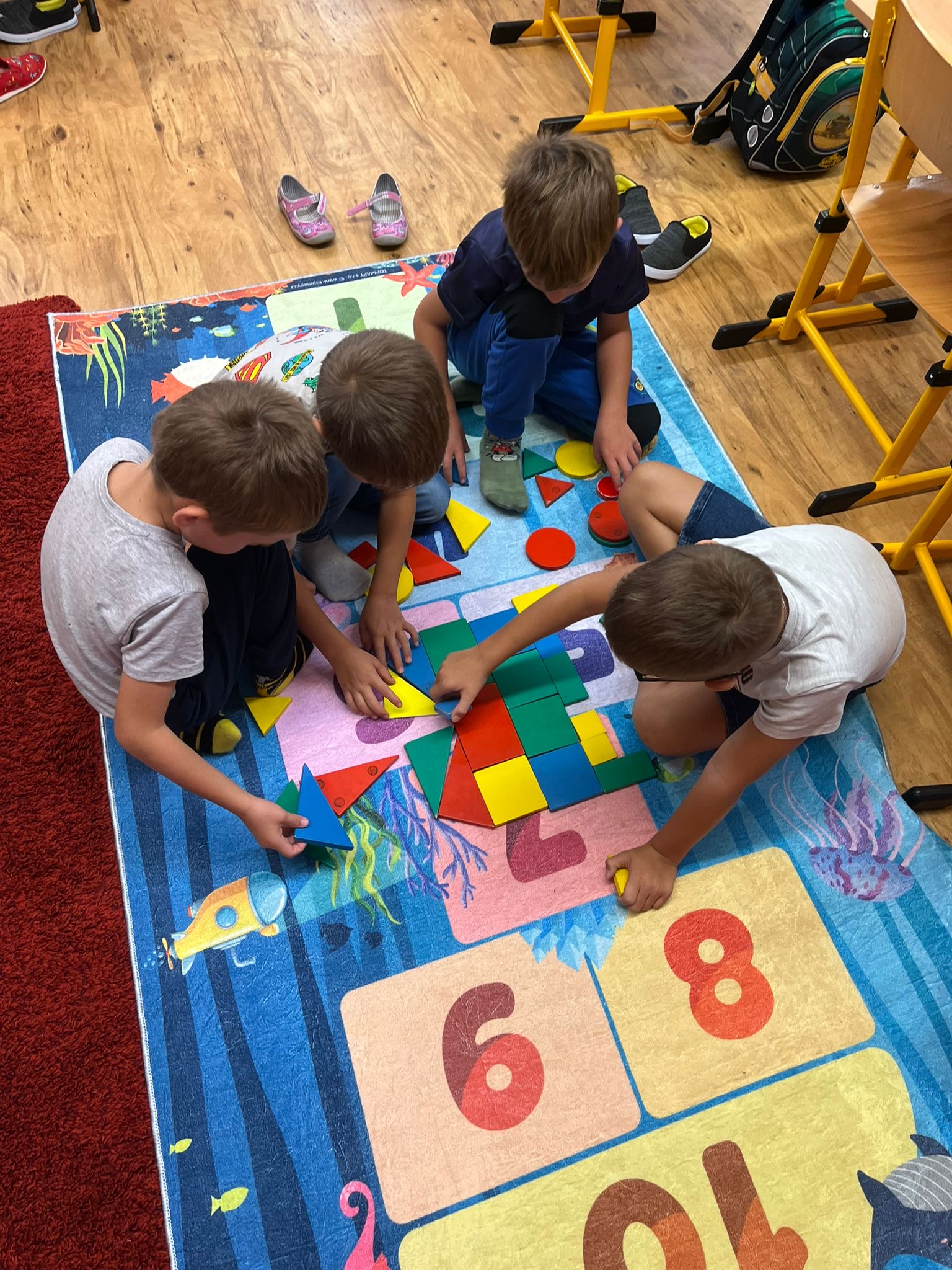 Naši prvňáčci jsou už měsíc velkými školáky. Zvykají si na nové povinnosti, pilně pracuji, počítají, učí se písmenka. A že jim to jde! Už umí O,S,B,U a A :).