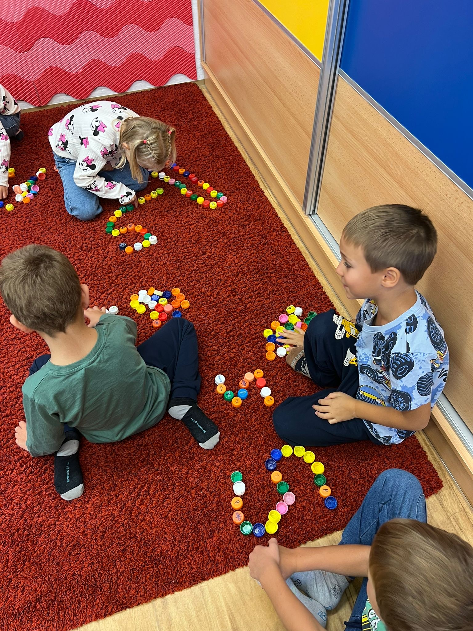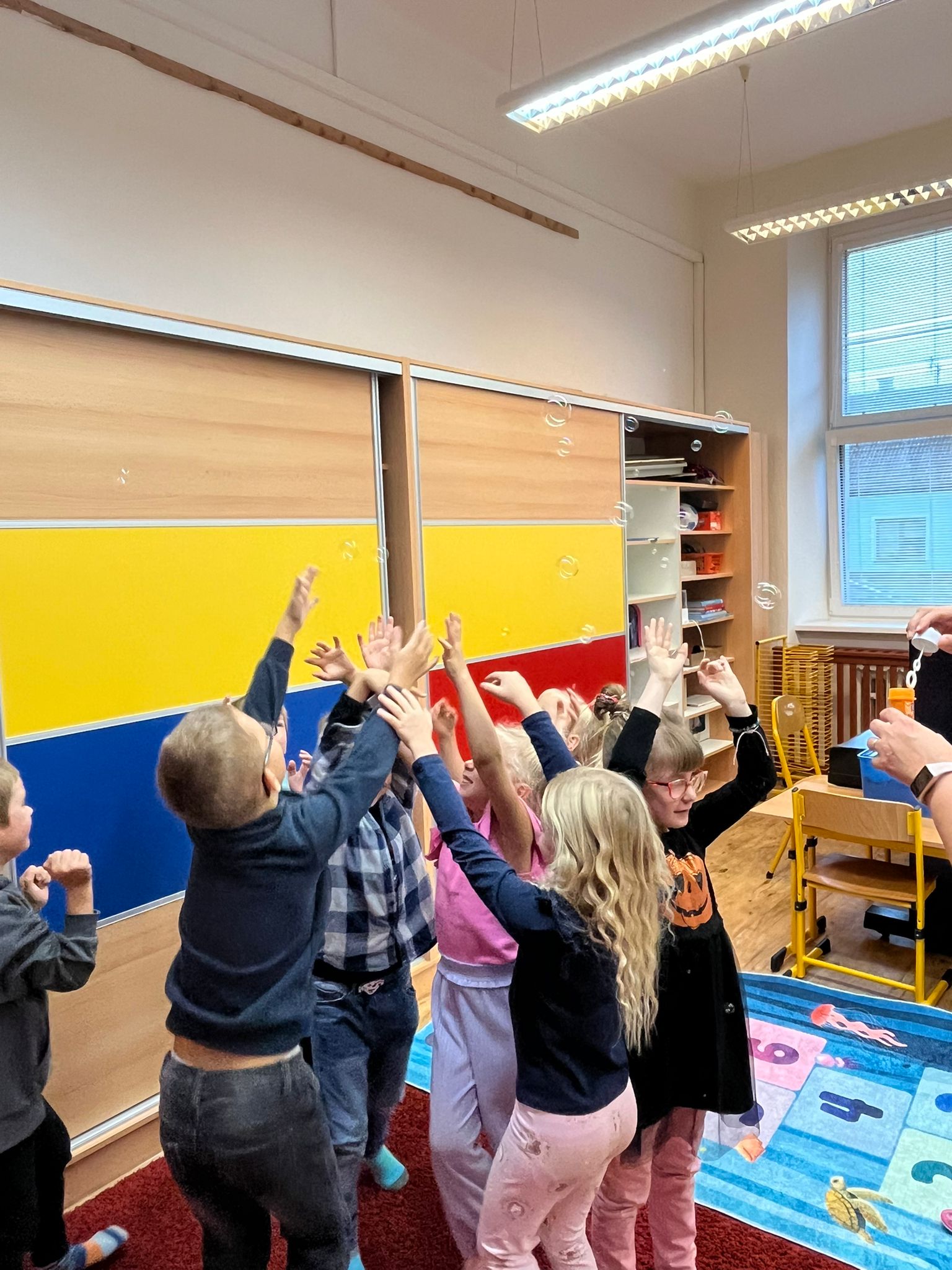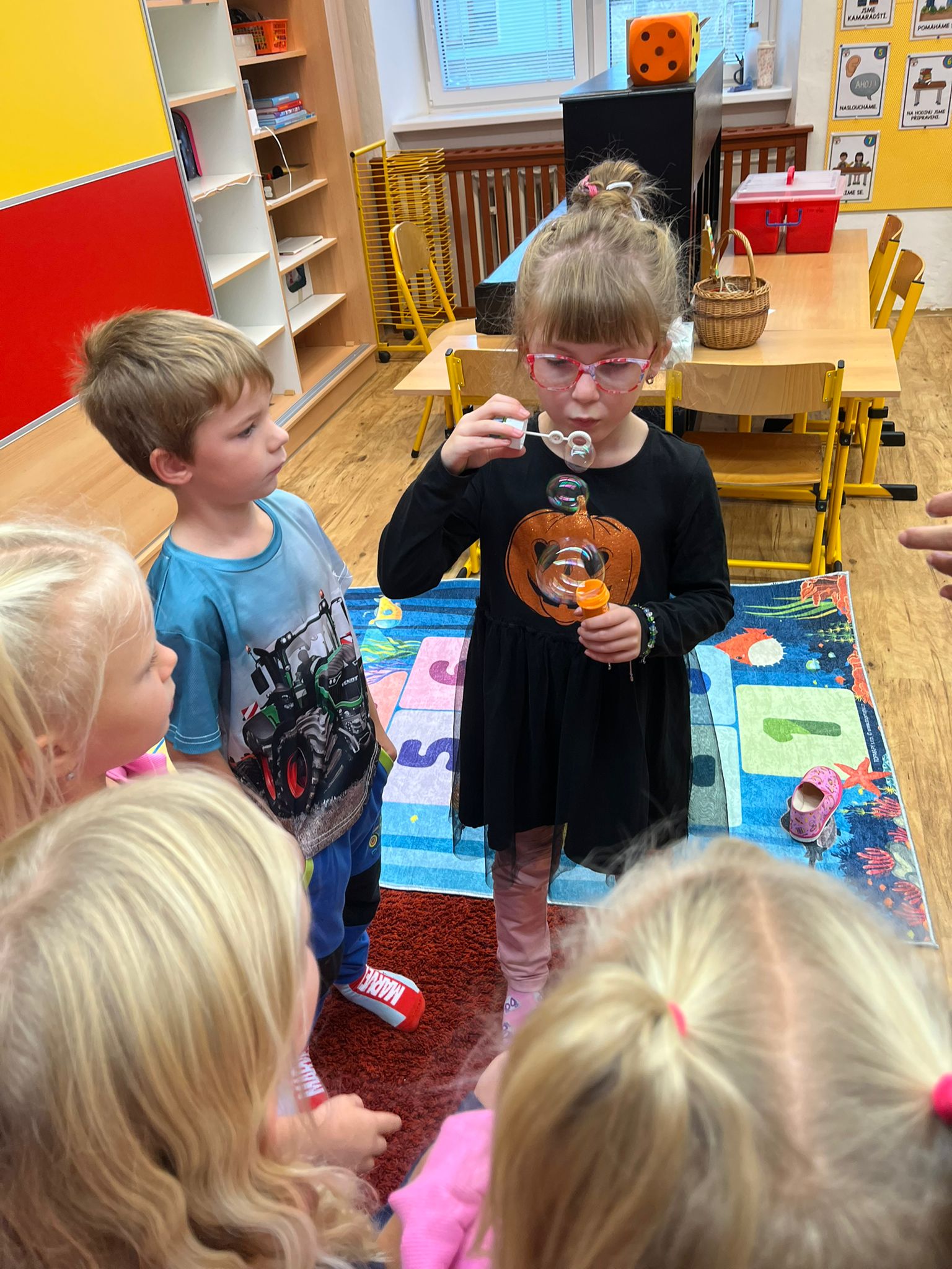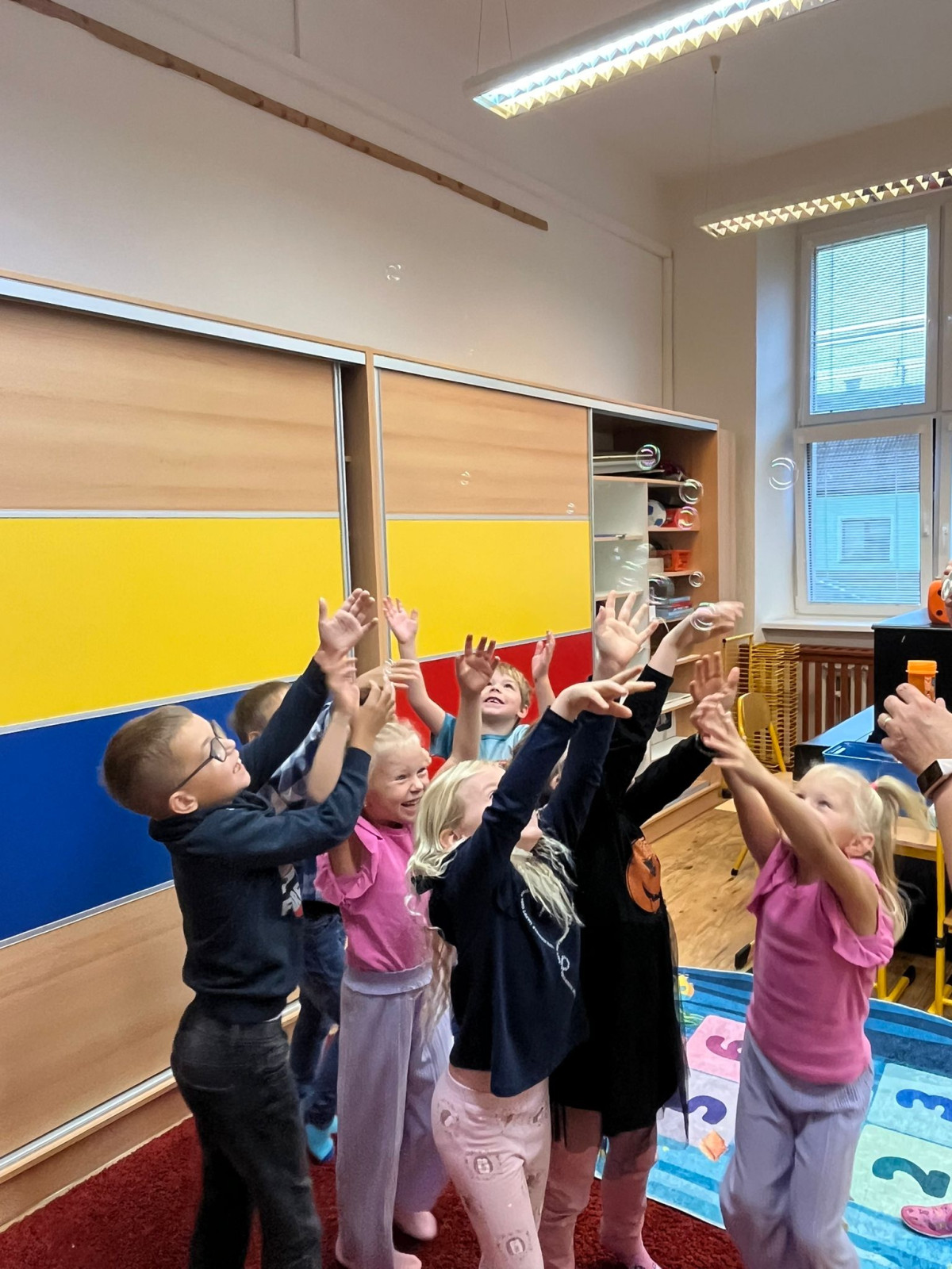 Naši prvňáčci jsou už měsíc velkými školáky. Zvykají si na nové povinnosti, pilně pracuji, počítají, učí se písmenka. A že jim to jde! Už umí O,S,B,U a A :).