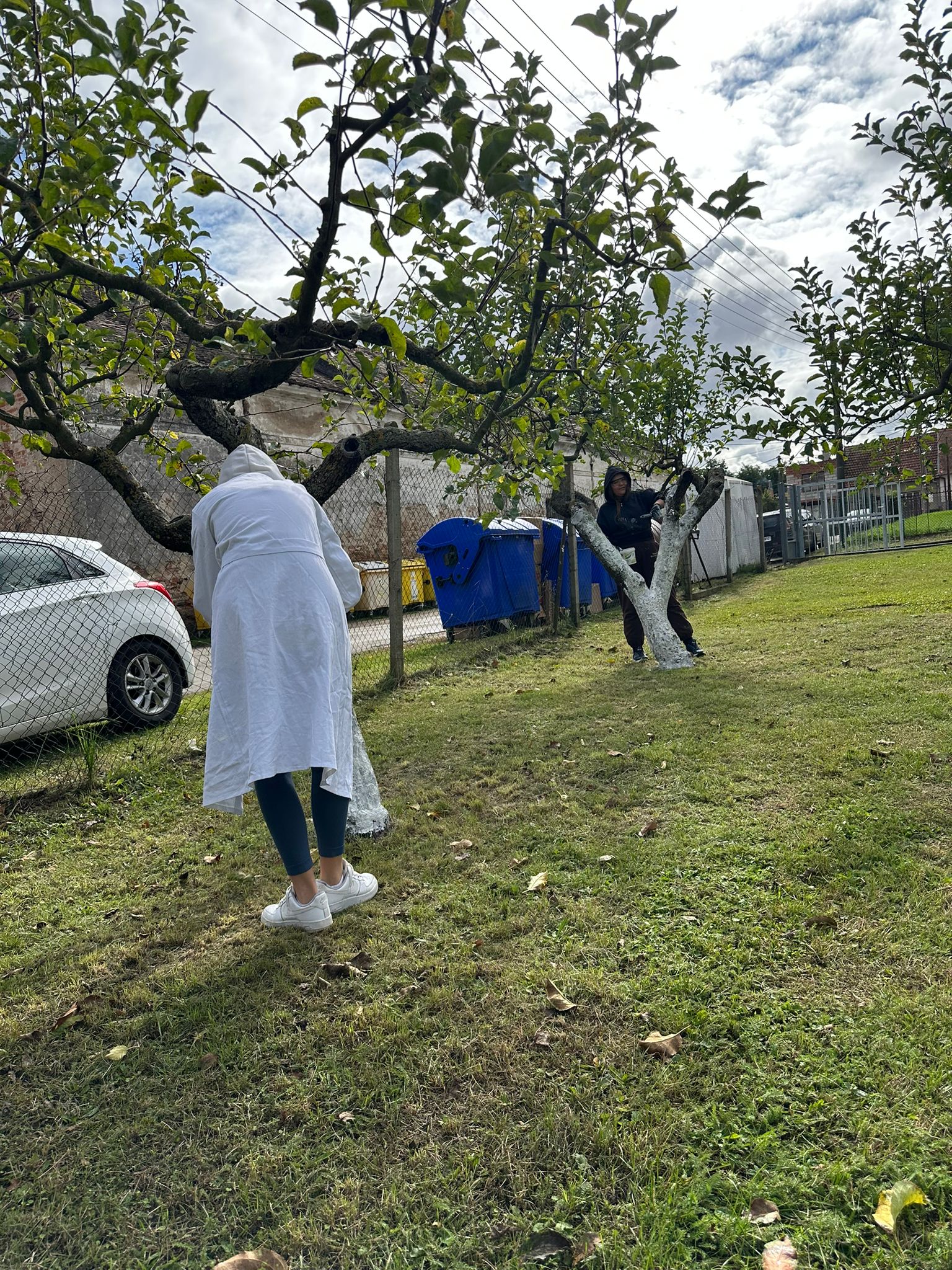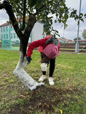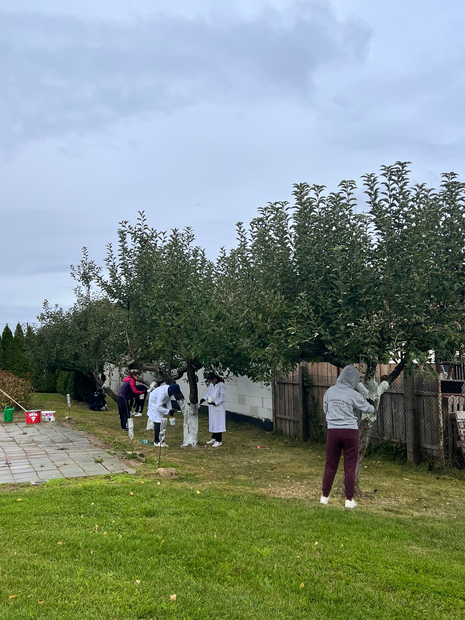 Stromy se natírali hašeným vápnem, aby se zabránilo šíření škůdců, praskání stromů při náhlých změnách teplot (protože bílá barva odráží sluneční paprsky) a hlavně aby se stromy vydesinfikovaly. Bylo to i přes nepřízeň počasí příjemné zpestření hodin chemie.