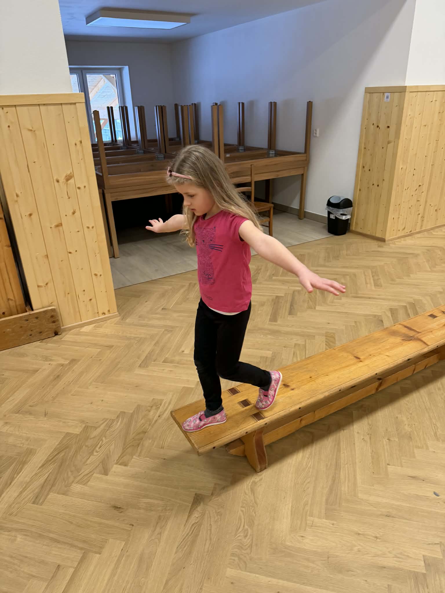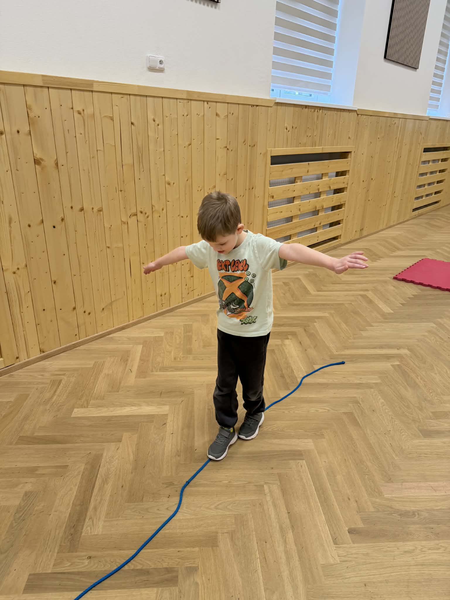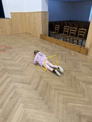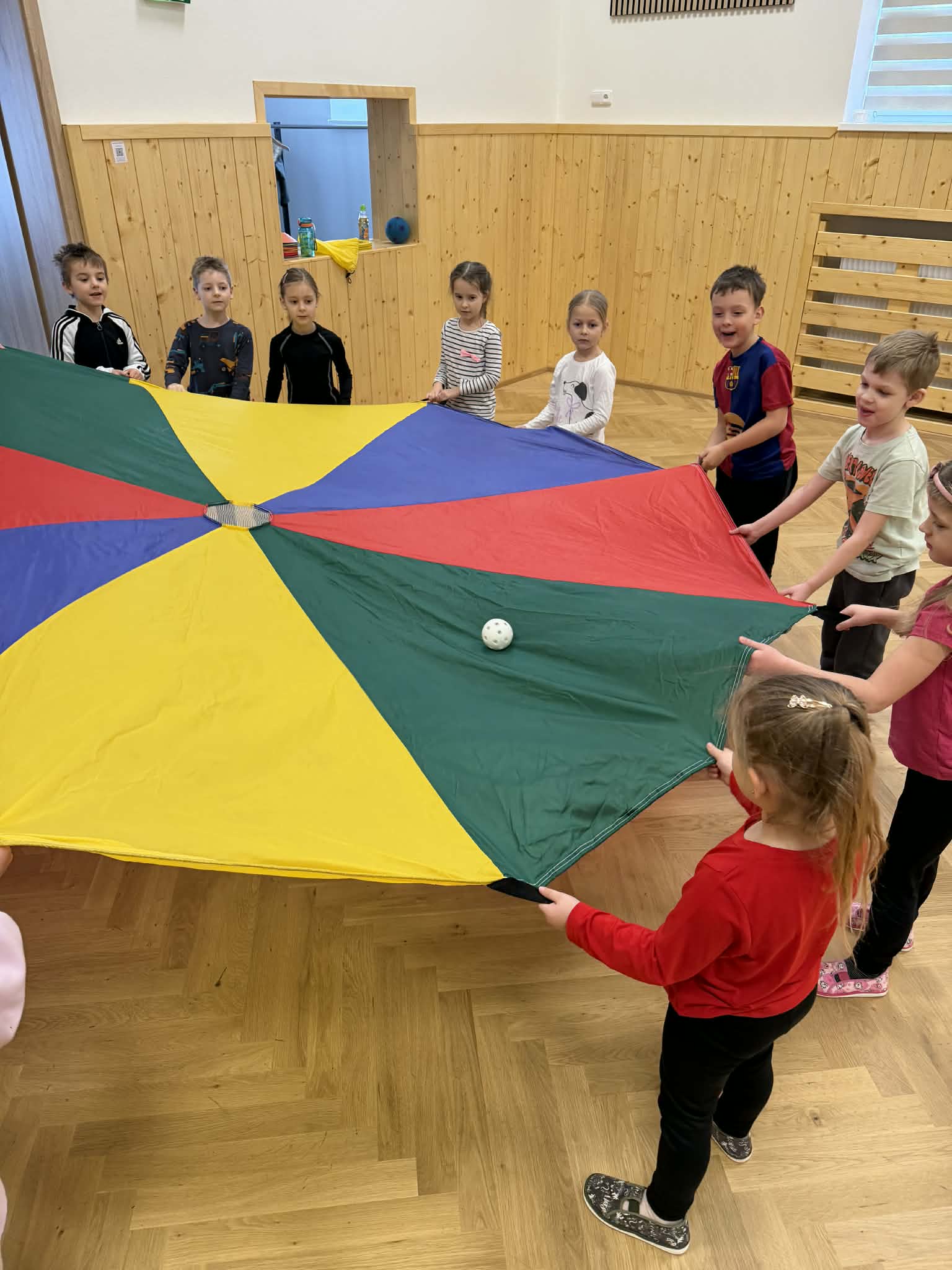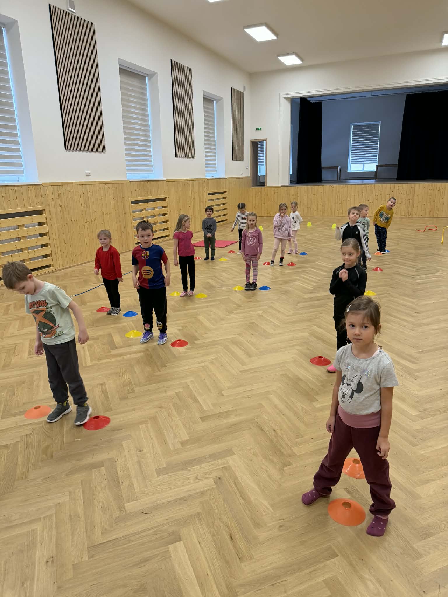 Velké nadšení sklidila také tělocvična, kde si předškoláci zahráli různé pohybové hry a společně si zacvičili.