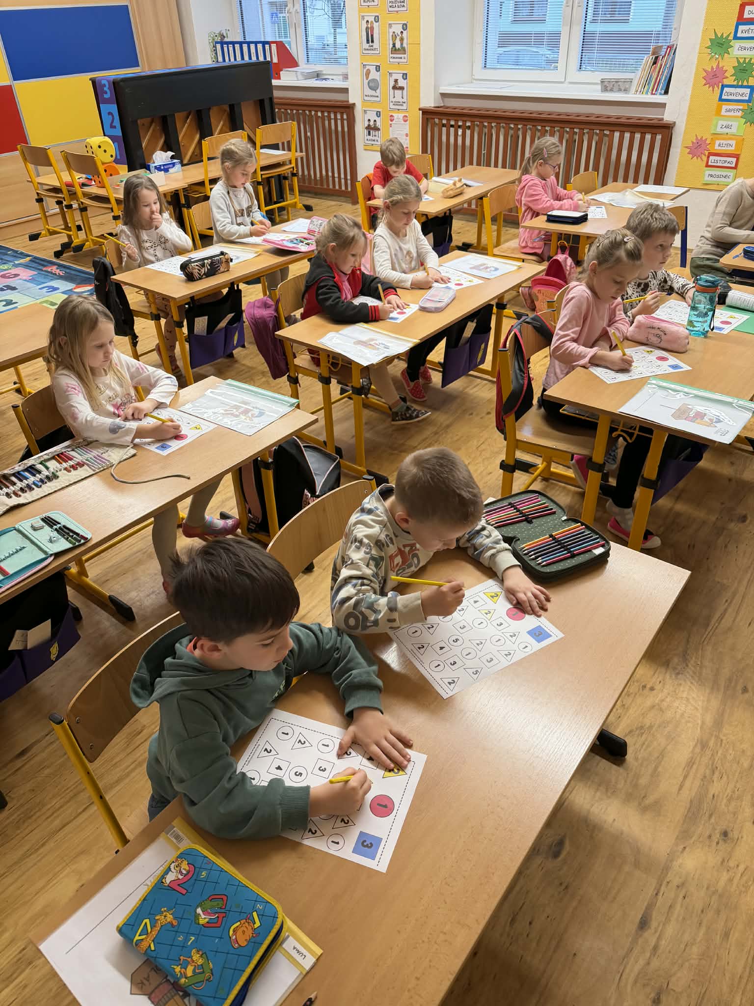 Během setkání se děti seznámily se svou budoucí paní učitelkou. Společně si hravou formou procvičily geometrické tvary, porovnávaly, počítaly, vytleskávaly slabiky a určovaly první a poslední písmeno ve slovech. Vše probíhalo prostřednictvím her a zábavných aktivit, díky nimž si děti mohly vyzkoušet, co je ve škole čeká.
