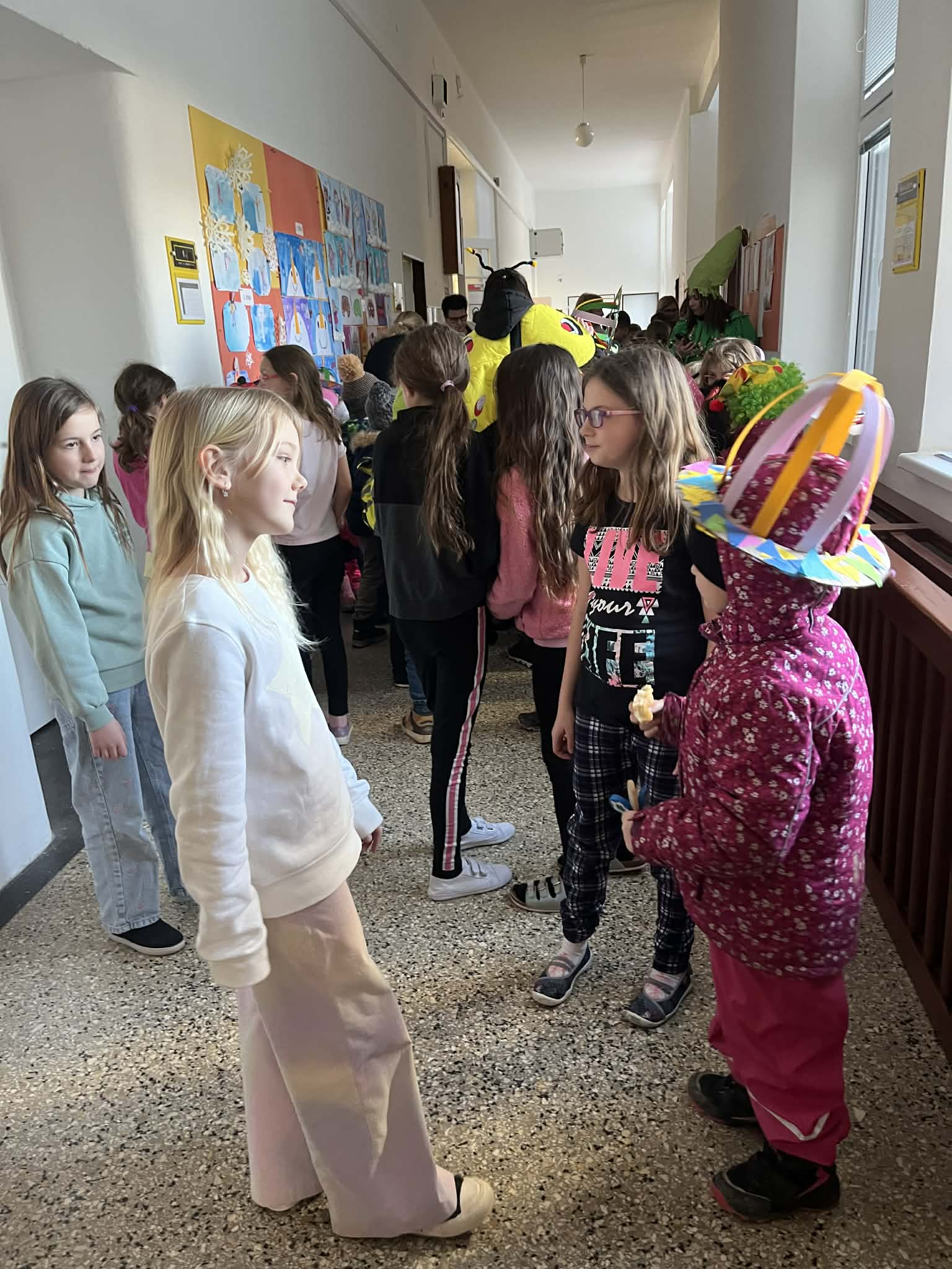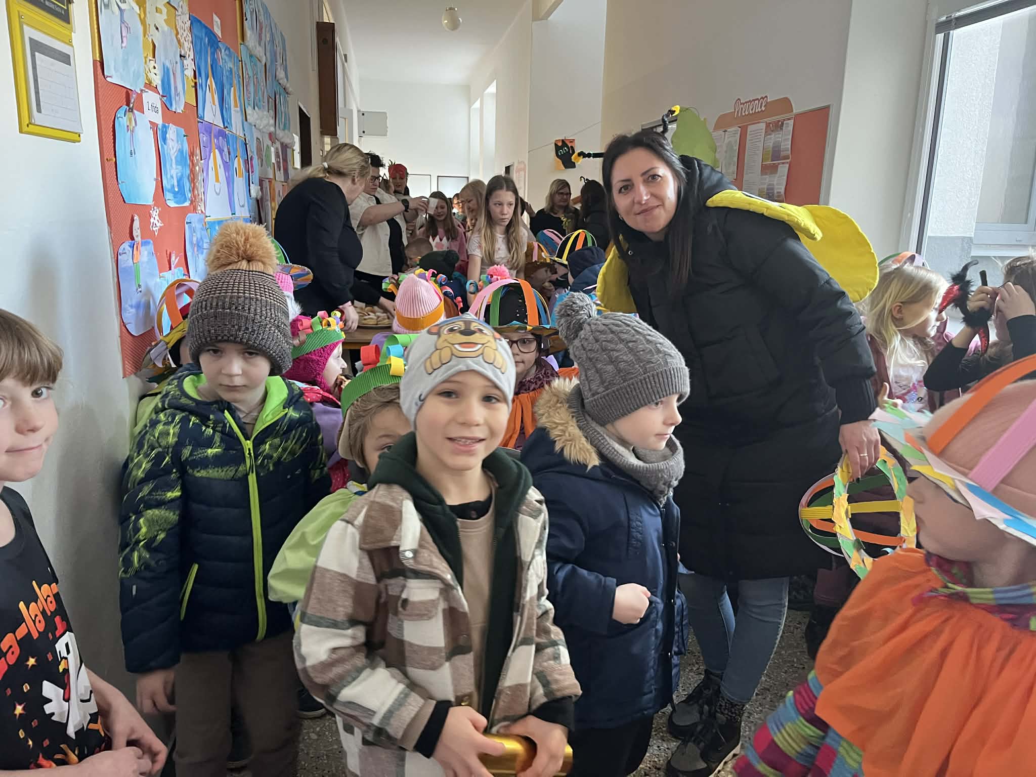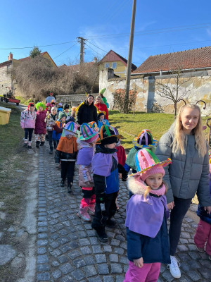 Ve středu 25. února se naši prvňáčci vypravili společně s dětmi z místní mateřské školy na masopustní průvod obcí.