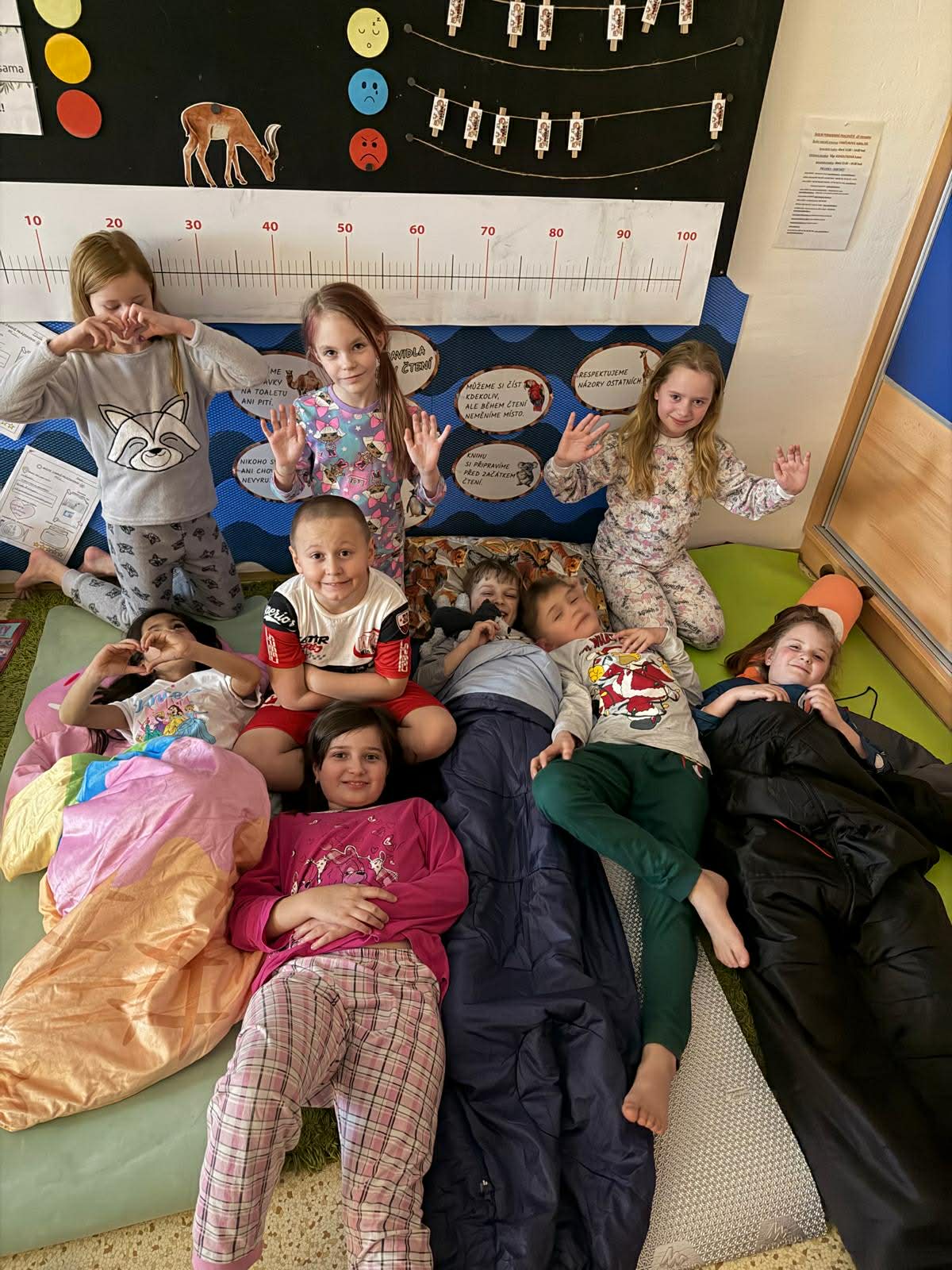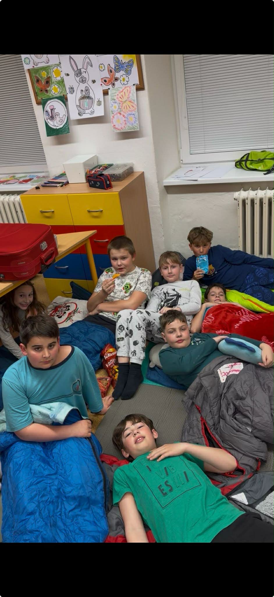 Školní chodby se na jednu noc proměnily v laskavý svět plný písniček, vtipných rýmů a příběhů. Program byl pestrý – děti se seznámily se životem Zdeňka Svěráka, dozvěděly se, kdo to byl Radovan a proč se vždy rád raduje, a samozřejmě jsme nezapomněli na krásné písničky.