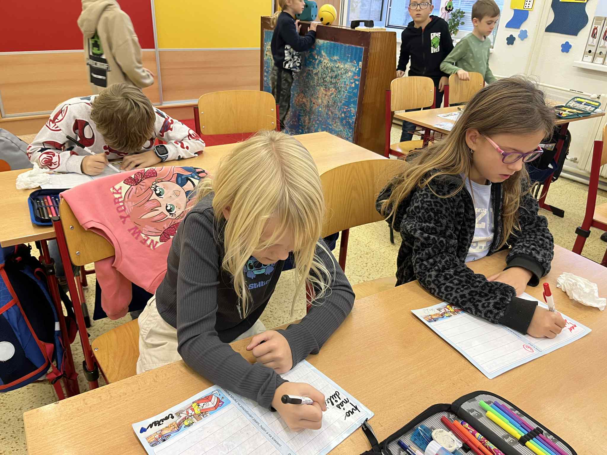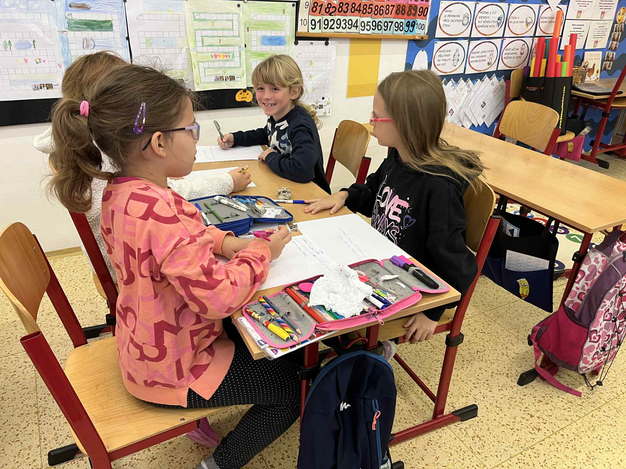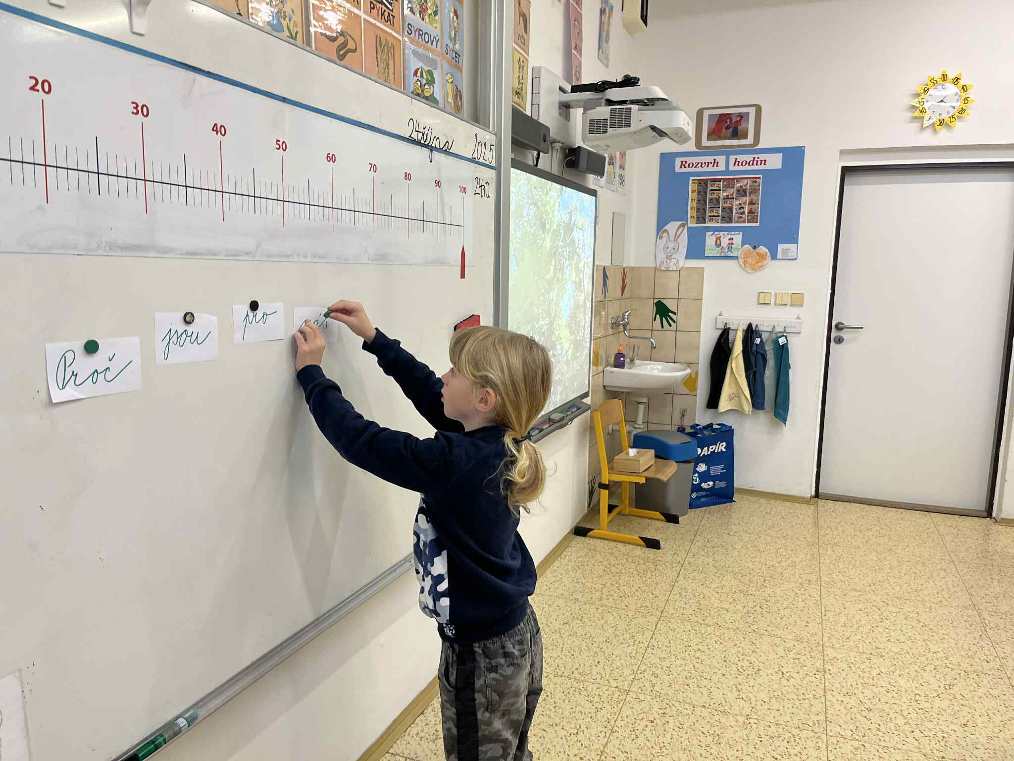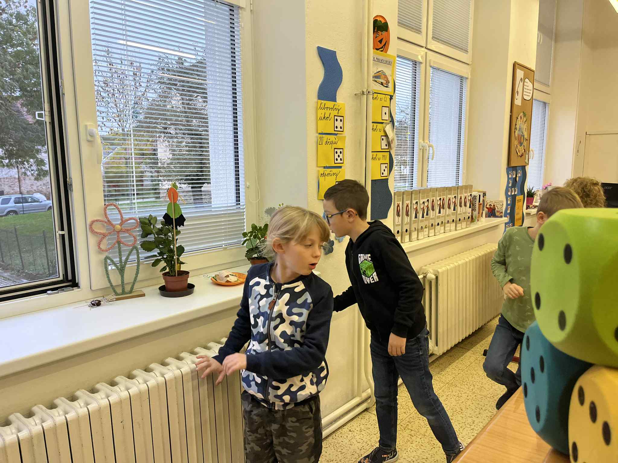 Na začátku hodiny jsme si společně zazpívali písničku „Stromy“ od Jaroslava Uhlíře a Zdeňka Svěráka, která nás příjemně naladila na celé dopoledne. Poté následovala úvodní část – Brainstorming, při kterém děti nejprve pracovaly ve dvojicích a poté ve skupinkách. Společně přemýšlely, proč jsou pro nás stromy důležité a jak nám pomáhají v našem životě i v přírodě.