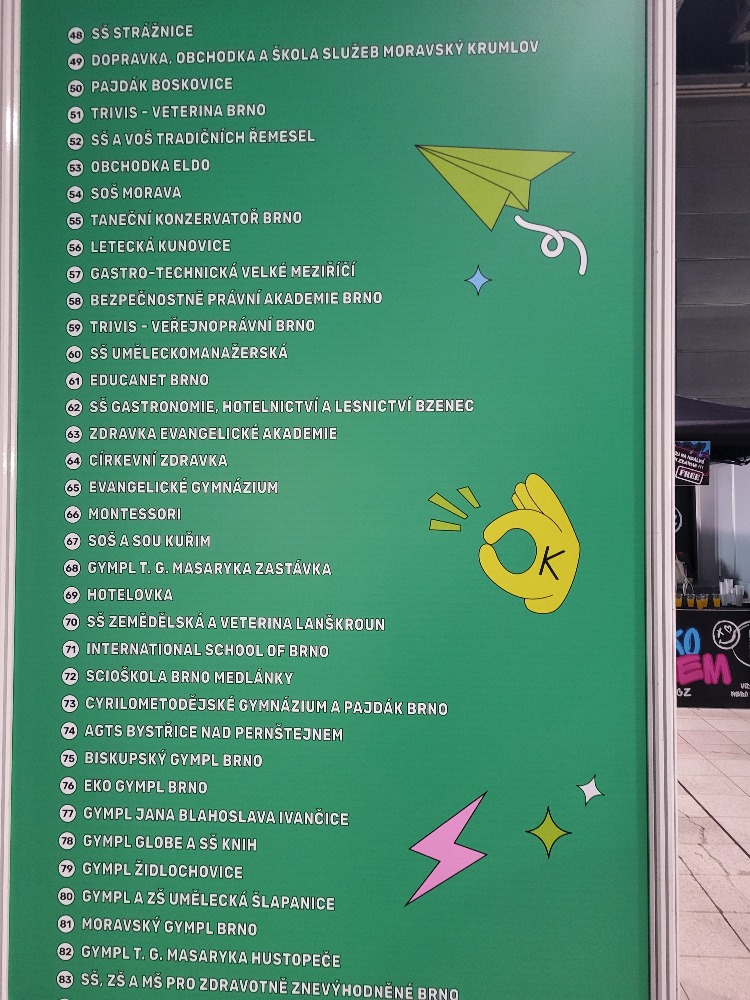 Akce byla hojně propagována,protože zde vystavovaly SŠ nejen z Brna ,ale i okolních regionů - např. Znojmo,Moravský Krumlov,Kuřim,Velké Meziříčí,Zastávka,Bystřice nad Pernštejnem,Židlochovice,Hustopeče,Cvrčovice,Rajhrad apod.,celkem asi 50 SŠ,žáci tedy měli z čeho vybírat a získávat informace o SŠ a oborech, co by je do budoucna zajímalo a bavilo. Veletrh SŠ se vydařil a všichni si odnášeli dost zajímavostí o daných SŠ.